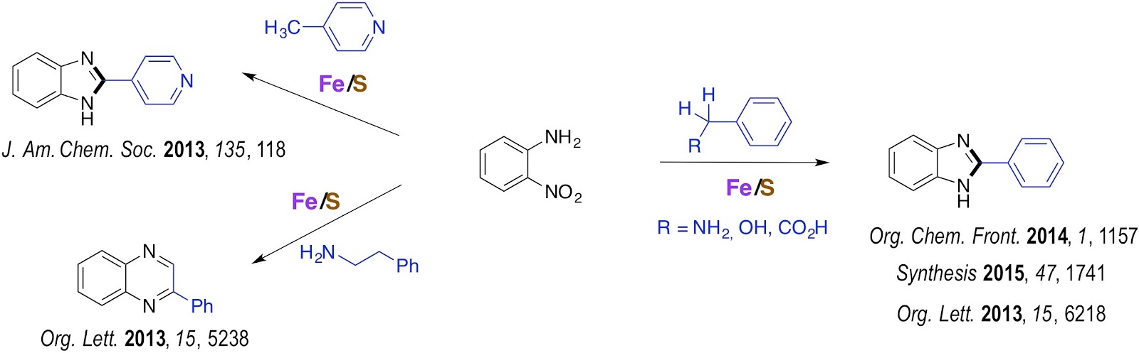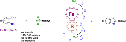 cascade of reduction of the nitro group, sulfuration of a C–H of the